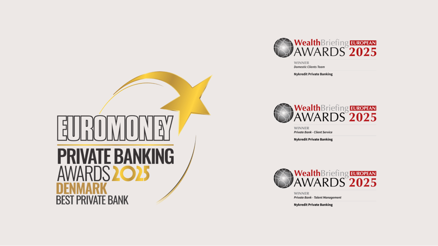 Det er tredje år i træk, at Euromoney kårer Nykredit som bedst til Private Banking i Danmark, og syvende år i træk, at Nykredit Private Banking hædres til WealthBriefing Awards – i år med priserne Best Domestic Clients Team, Best Private Bank - Client Service og Private Bank - Talent Management.